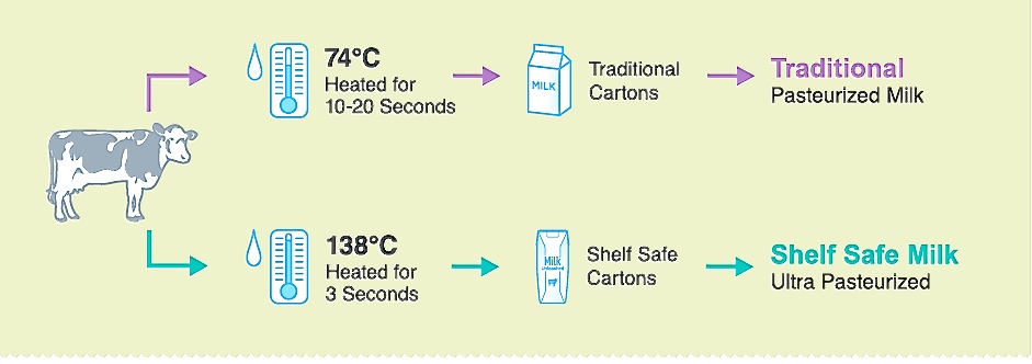 High temperature treatment affects and denatures the protein present in the milk therefore loss of protein in UHT milk is higher. Also, soluble calcium is difficult to be absorbed by the body when the milk is ultra-heat treated. The shelf life of pasteurized milk is for a few days which is why the market coverage of such milk is limited. Whereas, the UHT milk reaches its sterile state therefore it can not only be transported but kept in store for a longer period of time, that too at room temperature. Also, the shelf life is 3-4 months therefore in terms of convenience UHT milk is safer and better.
